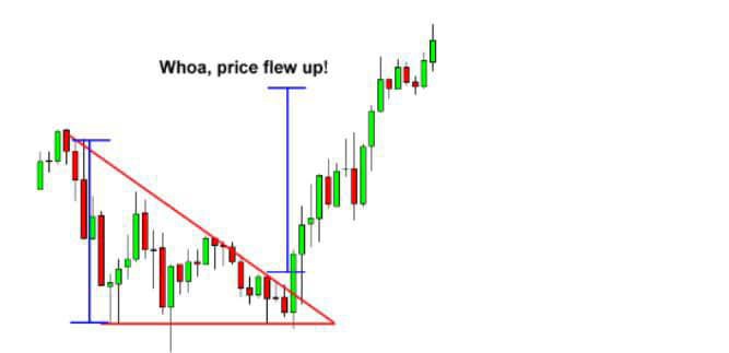 In this case, the price ended up breaking above the top of the triangle pattern. After the upside breakout, it proceeded to surge higher, by around the same vertical distance as the height of the triangle. Placing an entry order above the top of the triangle and going for a target as high as the height of the formation would have yielded nice results
