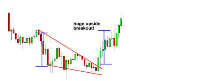 In the chart above, we can see that neither the buyers nor the sellers could push the price in their direction. When this happens we get lower highs and higher lows. As these two slopes get closer to each other, it means that a breakout is getting near. We don't know what direction the breakout will be, but we do know that the market will most likely break out Eventually, one side of the market will give in. So how can we take advantage of this? Simple. We can place entry orders above the slope of the lower highs and below the slope of the higher lows. Since we already know that the price is going to break out we can just hitch a ride in whatever direction the market moves.