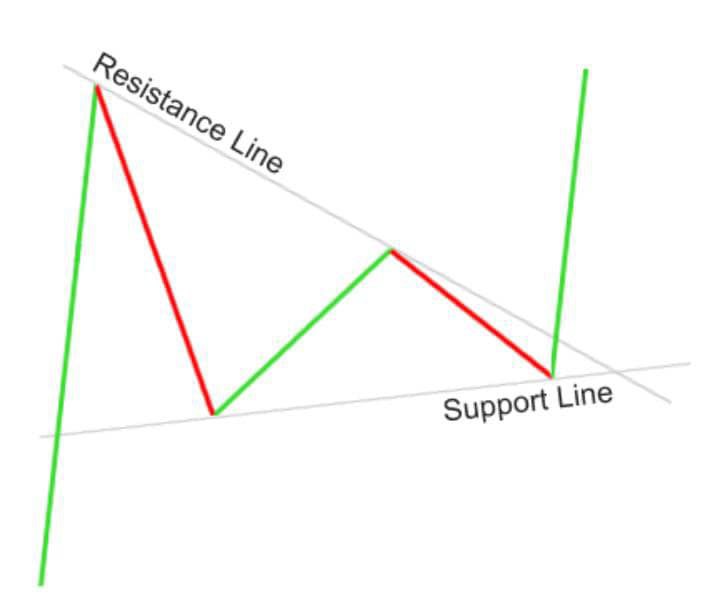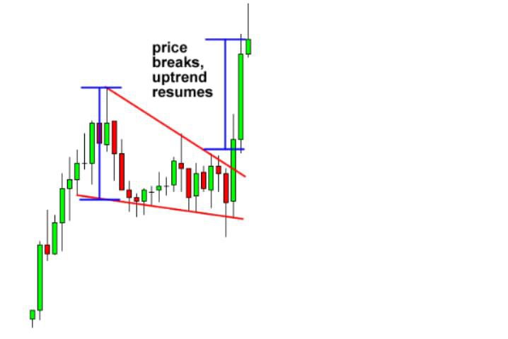 While the price is still consolidating, more buyers or sellers usually decide to jump in on the strong move, forcing the price to burst out of the pennant formation.