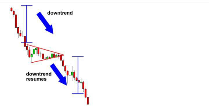 In this case the price broke to the down side and the downtrend continued. That's why it's called a continuation signal