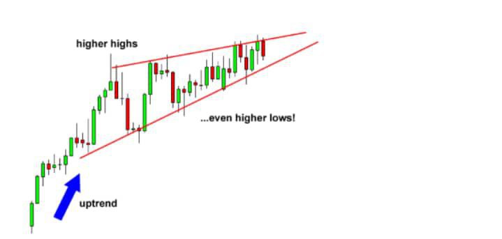 Notice how the falling trend line connecting the highs is steeper than the trend line connecting the low